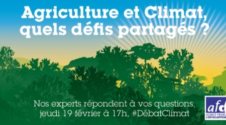 A l'occasion de ce Challenge Climat et du Salon de l'Agriculture, l'Agence Française de Développement vous invite à réagir sur le sujet suivant : "Agriculture et Climat : quels défis partagés ?". Sur Twitter pendant une heure le 19 février prochain, des ingénieurs agronomes spécialisés sur ces sujets interagiront avec des journalistes spécialisés en répondant à vos questions. A cette occasion, l'AFD vous fait gagner des places pour le SIA. Pour participer, posez vos questions via le #DebatClimat en mentionnant le compte de l'AFD @AFD_France.